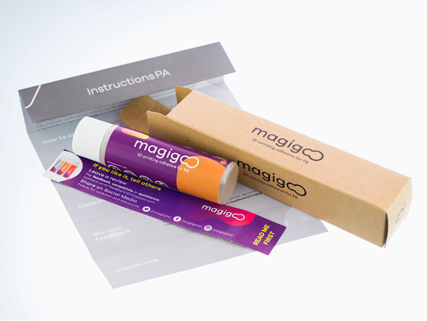 Magigoo PA е предназначен за професионална употреба, за работа изключително с полиамидни нишки. Детайлът трябва да се отстранява сравнително лесно, след като изстине, а остатъците от лепило също трябва да се почистват лесно.