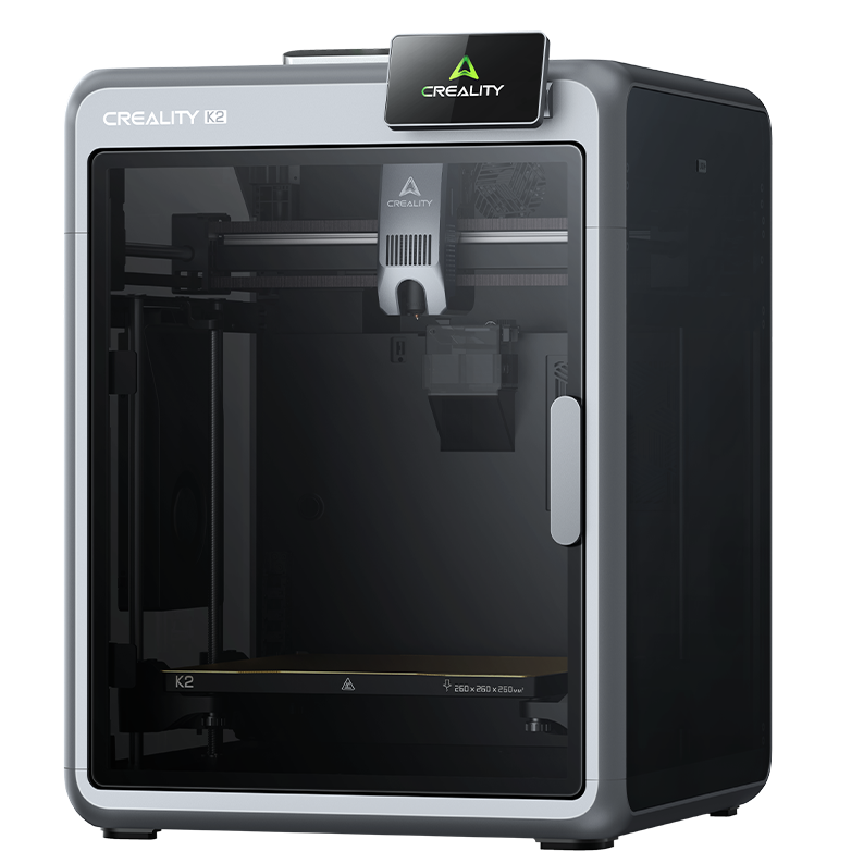 Creality K2  e е базовият модел от K2 серията, проектиран за потребители, които търсят високоскоростен CoreXY принтер в по-компактен, затворен корпус. Той предлага впечатляваща максимална скорост от и работи с FOC Step-Servo двигатели за прецизен печат.  Това го прави отличен избор за бърз печат на основни материали (като PLA, PETG и ABS).