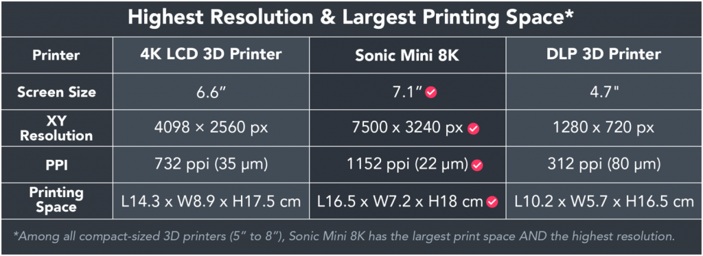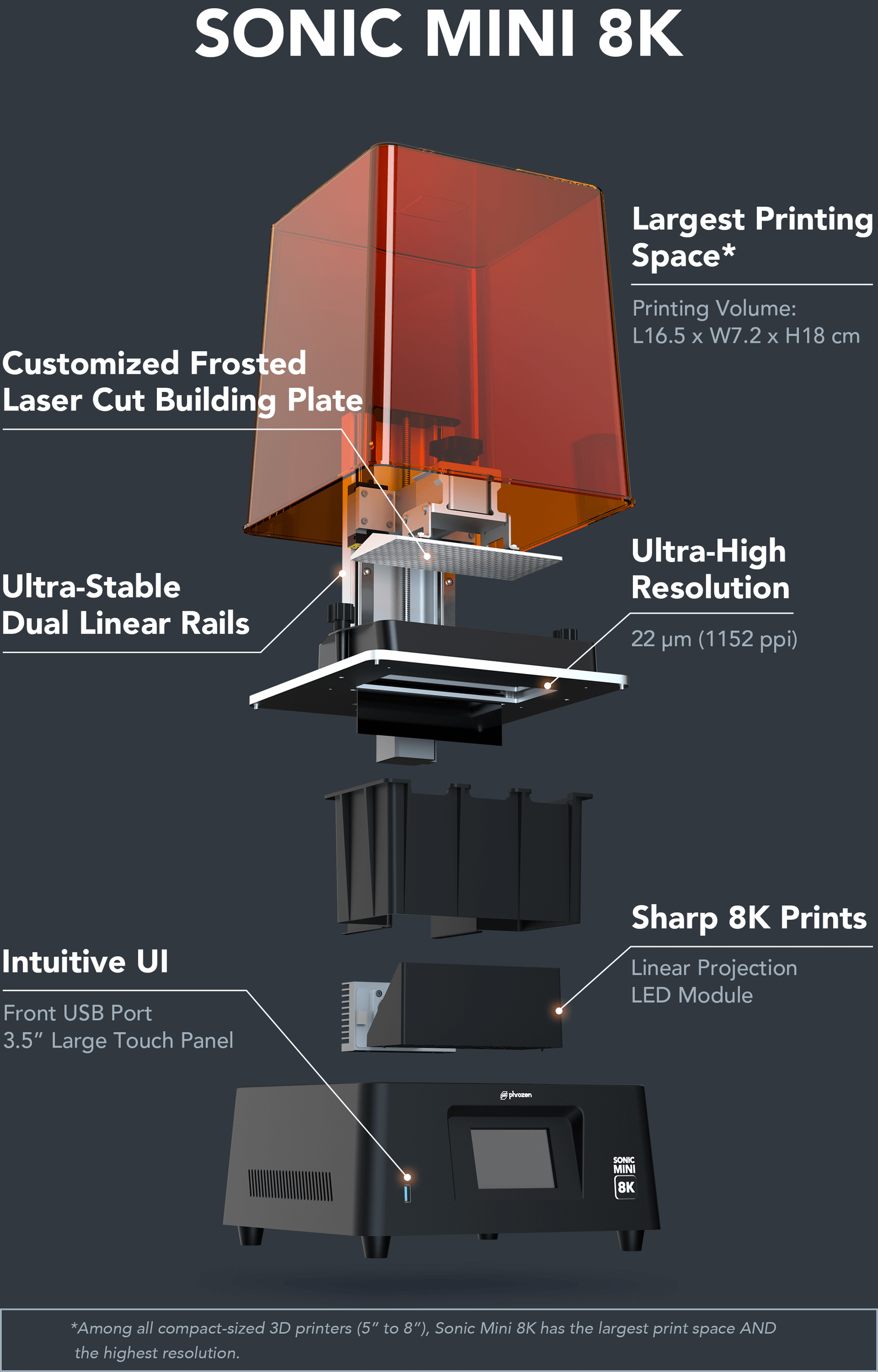 7.1 -инчов LCD 3D принтер с резолюция 22 µm (1152 ppi)! Phrozen го направи отново, за пореден път първи! Sonic Mini 8K с разделителната си способност надминава всички потребителски 3D принтери на пазара.