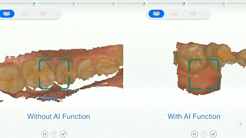-С функцията “Изкуствен интелект” софтуерът автоматично идентифицира и филтрира ненужните данни за меките тъкани по време на 3D сканиране, което води до по-бърз и чист процес на сканиране.