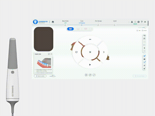 В допълнение, Aoralscan 3 е оборудван с широка гама от интелигентни различни функции, осигуряващи по-комфортно изживяване в денталната клиника. Ползите от тази технология са многобройни: както пациентът, така и практикуващият получават комфорт и няма нужда от използване на отпечатъчни материали. След като цифровият зъбен отпечатък бъде сканиран, всичко, което трябва да направите, е да го изпратите на зъботехника по имейл или с помощта на облака Shining 3D (платформа за данни, която улеснява обмена между клиники и зъботехнически лаборатории).