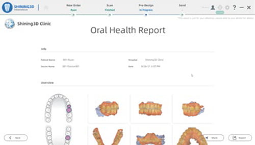 Aoralscan 3 и неговият софтуер позволяват по-плавно сътрудничество между клиники и лаборатории за постигане на ефикасна и ефикасна възстановителна работа. Денталният облак на Shining 3D позволява предаване на данни, което улеснява клиниките и зъболекарските лаборатории да прехвърлят данни и да комуникират.