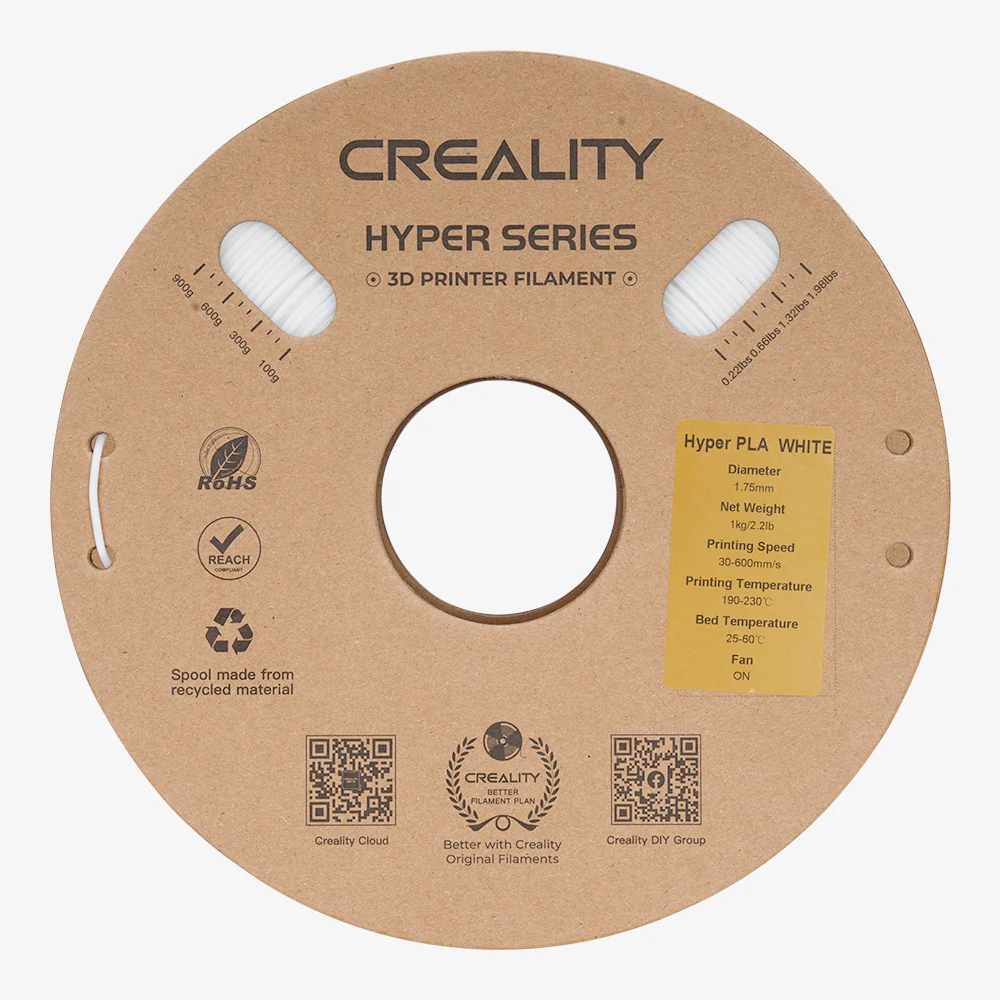 Creality Hyper PLA, 10 пъти по-бърз печат. Благодарение на формулата с висока течливост и бързо охлаждане, Hyper Series PLA поддържа скорост на печат до 600 mm/s. Високата флуидност осигурява достатъчно топене и екструдиране, а бързото охлаждане позволява бързо оформление при високоскоростен печат.