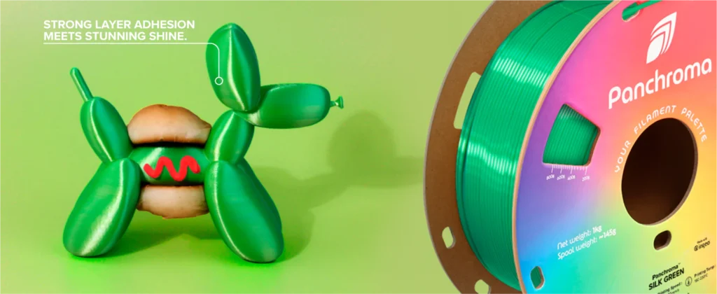 Polymaker Panchroma Silk  Новата копринена формула решава проблемите с крехкост и запушване, като същевременно запазва лъскав, гладък завършек. Печата по-бързо и по-чисто – до 250 mm/s с надеждни резултати всеки път; идеална за 3D печат на всякакво ниво на опит.