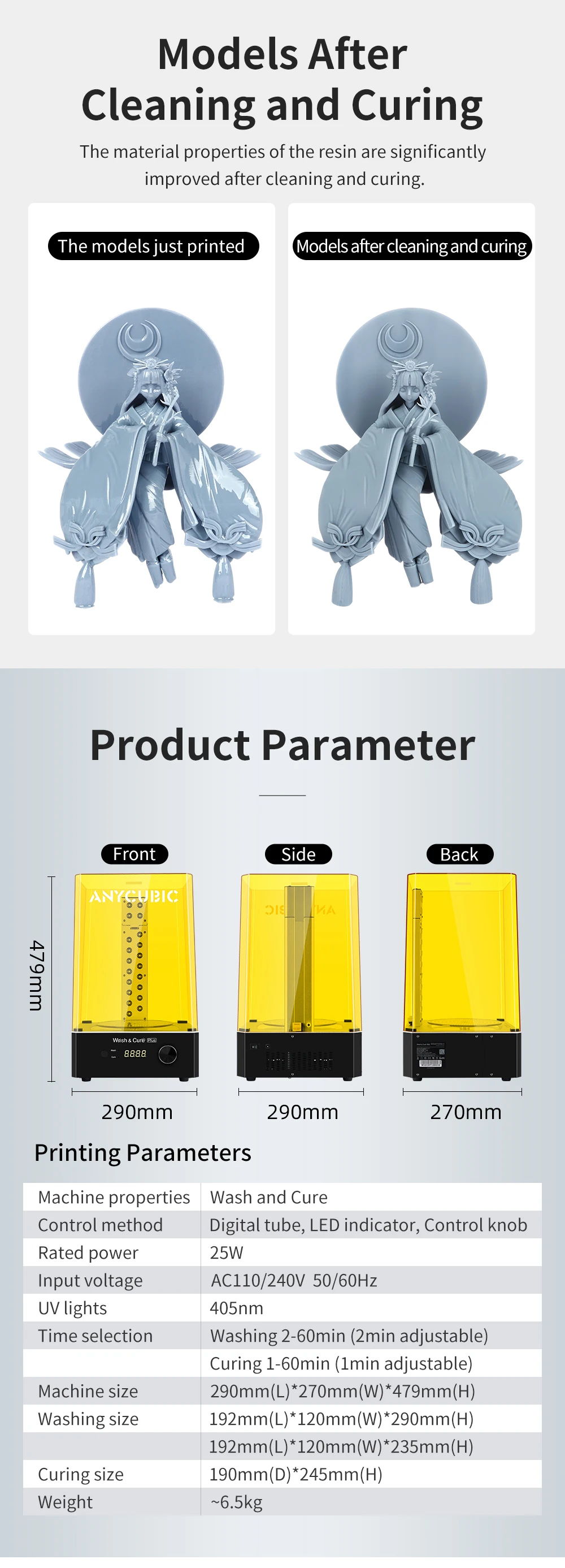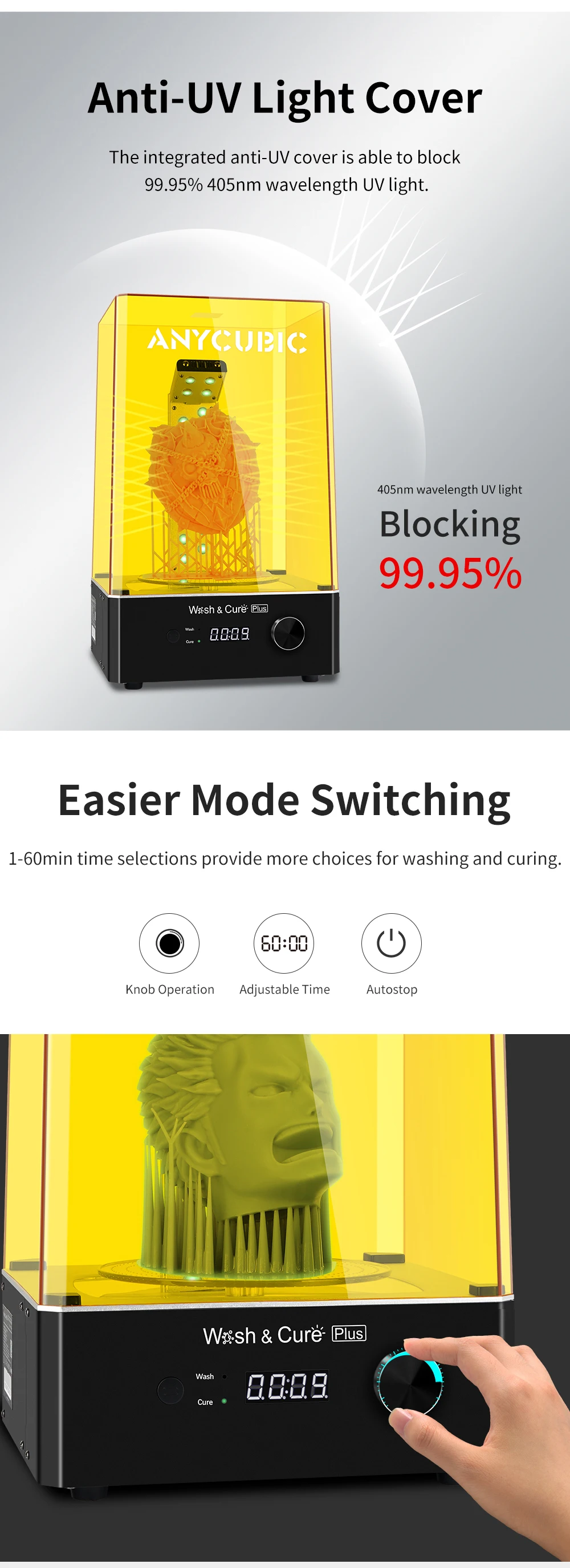 Новият модел Anycubic Wash and Cure Plus наследява свойствата на предишното поколение станции за обработка и ги надгражда с по-голям полезен обем за работа.